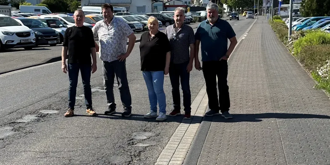 Kürzlich traf sich Stadtbürgermeister Achim Grün mit den Fraktionsvorsitzenden der im Stadtrat vertretene Parteien und Olaf Waldecker von der Werbegemeinschaft VG Mendig in der unteren Bahnstraße für einen Fototermin, um auch bildlich auf die „Schlaglochpiste“ hinzuweisen. „Seit der Sperrung der B 262 aufgrund des Ölunfalls hat sich der Straßenzustand durch den deutlich zunehmenden Schwerlast-Verkehr weiter verschlechtert. Die sogenannte ‚laufende Unterhaltung‘ durch die Straßenmeisterei ist weit unter unseren Erwartungen und mit ihr ist es aus unserer Sicht nicht getan“, so Stadtbürgermeister Grün.